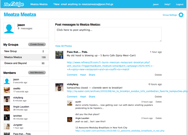 The Fridge aims to be the perfect service to share a bunch of party photos with only your fraternity brothers, or share stories with only the friends you’ve invited to your wedding, or plan a trip with only your hiking buddies (you get the idea). The whole site is focused on privacy, but you won’t find an array of dials that let you fine-tune which of your twelve buddy lists you want to show a certain photo to. Instead, The Fridge is built around private groups — if you’re in a group you can see everything everyone else in the group shares (you don’t have to ‘friend’ each individually). If you aren’t in a certain group, you won’t even know it exists. It’s all-or-nothing, and that isn’t a bad thing.