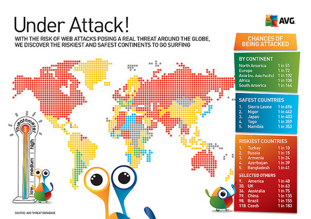 According to a study just released by security company AVG, Internet users in Russia and Turkey have the greatest chance of being attacked by viruses, with the average chance of a web surfer falling prey to an attack being at one in 10 and and one in 15, respectively.