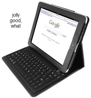 There’s an iPad case available in the UK (though unfortunately out of stock at the moment) that has a Bluetooth keyboard built right into the cover. Adds a little weight, but if you do more than a little typing on that thing, you likely will appreciate having physical keys. It’s going through the FCC right now, so expect it on our shores shortly.