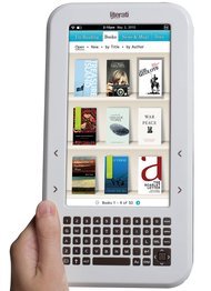 The Literati, shown here, is an e-reader with a full color display. MechSource, the creators of this e-reader, are hoping to get a jump on the color e-reader market with this device. It does not have a touchscreen, it does not allow you to browse the web, and it does not run any applications. It’s simply a $159 color e-reader. It uses the Kobo platform, and will come bundled with 25 public domain works for your reading pleasure.