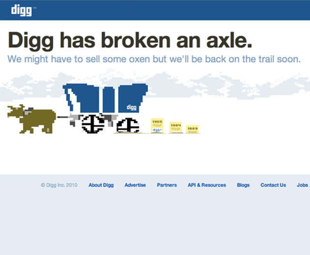 If you’ve been on the new Digg at all in the past day or so you’re probably already familiar with the above “Fail Ox” image, especially if you’re trying to use Digg search. The image is new, and is the result of Digg designer Tyson Rosage‘s obsession with the old school computer game The Oregon Trail.