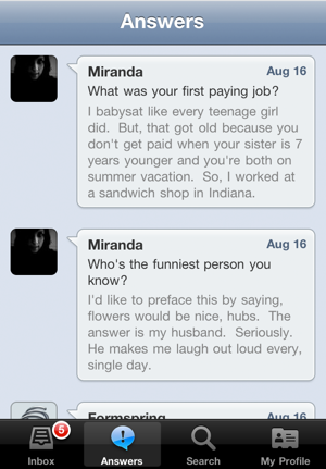 Another highly-requested featured has been an iPhone application. Formspring still doesn’t have its own official application, but third party developer Taptivate has used Formspring’s still-private API to build one themselves. It’s called Spring, and it’s slated to land early next week — expect it to be quite popular. Formspring says that this isn’t the official app, and that it will consider building or buying one itself down the line.