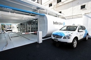 I should qualify that, it makes sense for fleet vehicles. Perhaps with a redesign and a giant socket in the trunk for the worlds largest AA battery, but the current technology certainly isn’t set up for a quick change. TreeHugger reported on all the gory details, and the end result is until battery technology matures to the point where we’re able to get better distance out of a cell, this may be what the future holds.