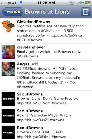 TweetQB is populating these realtime tweets by looking for specific team hashtags or tweets from accounts known to be associated with those specific teams.