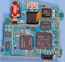 Wireless Goodness found these shots, and has a much more comprehensive idea of exactly what’s going on with the various circuits then I do. For example, the shot up above is of the main board and CPU: a Samsung Hummingbird processor running at 1GHz. The Hummingbird is a not so distant cousin of the Apple A4 processor, as both are made by Samsung. You can also see the NEC MC-10170 chip, which is the same video processing chip found in the Galaxy S devices.