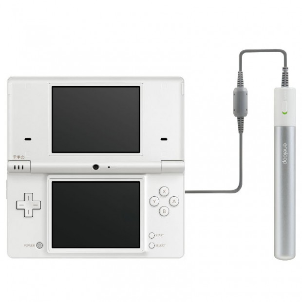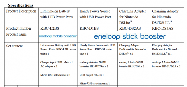 There will be two versions: one, the so-called “eneloop stick booster” (pictured above) comes with adapters (licensed by Nintendo) to power your DS and the other mobile devices mentioned above on the go. The other (dubbed eneloop mobile booster/pictured below) is not compatible to the DS – as is one of the stick type boosters, actually.