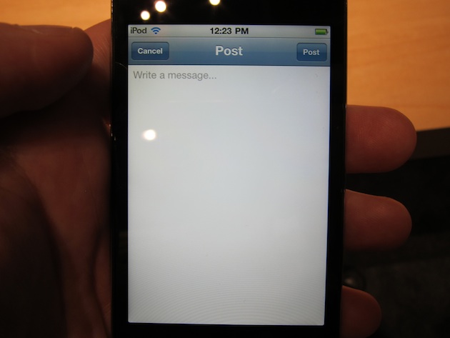 In the demo area after the event, Apple had a bunch of iPod touches loaded with iOS 4.1, so we got to play around with it. It’s a pretty slick experience on the device because it’s so simple. Below find some pictures of how it works.