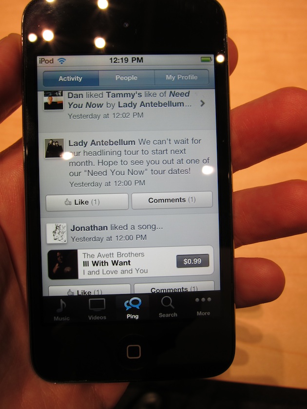One of the big announcements at Apple’s event today was Ping, the music social network that Apple has baked into iTunes. But it’s not just on iTunes for the computer, it’s also a part of iTunes on the iPhone and iPod touch. This will be a part of the new iOS 4.1 release which is going out to developers right now, and should be out for consumers next week.