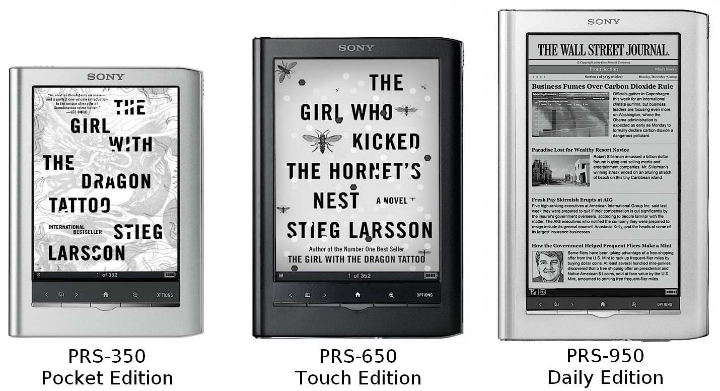 The 5-inch PRS-350 Pocket Edition is $179, the 6-inch PRS-650 Touch Edition is $229, and the 7-inch PRS-950 Daily Edition $299. Kind of expensive, don’t you think? Yeah, I thought so too. I mean, they look like great devices, but the Kindle is really killing them on price, and I think price is the main driver of e-reader sales, not features. Brushed aluminum and touch navigation are great, but I just don’t see a big market for them when everyone else is racing down to under a hundred bucks.