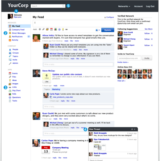 Yammer CEO and founder David Sacks tells me the feed is one of the key components of social networking and existing enterprise platforms have been built before the concept of a realtime feed. Yammer’s next-generation application, he says, will help enterprises create a social communications platform around data and communications.
