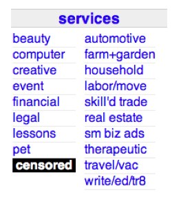 Erotic Services Adult Services section of their site. It’s gone, replaced by a large black and white “censored” logo.