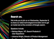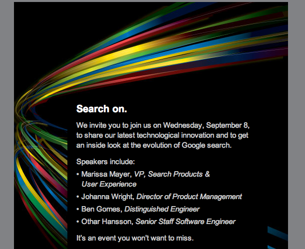In terms of the search event itself, Google sent out invites to members of the press last week with the title “Search on.” The fact that it’s at an art museum is interesting, though perhaps not entirely relevant. But the speaker line-up definitely is: