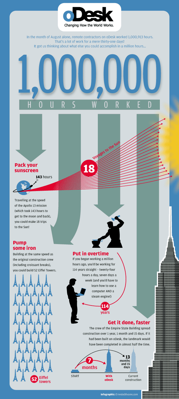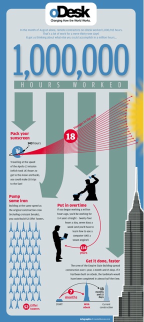 While full-time tech jobs might not be making a roaring comeback, freelance and part-time work seems to be picking up the slack. One data point just came out today illustrating the shift to freelance and online work. Online outsourcer oDesk passed one million hours of work on its system for the first time in the month of August. A year ago, workers on oDesk were logging less than half of that, about 400,000 hours per month. Online hiring is up 129 percent since last year, compared to flat employment growth in the larger economy.