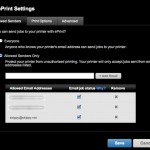 - control who can email print jobs with a whitelist of permitted senders