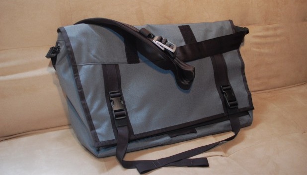 This awesome bag screams nonconformity. There isn’t a single logo or branding on the outside. It’s just a whole lot of slate gray with black piping. And that’s great. It’s sparse style is what sets it apart from department store specials. The shed isn’t just about style, though. No, this bag is a true messenger bag, in that it’s made for real-life bike messengers. It’s built to last and that philosophy shows. The materials are top-notch and all the compartments are have a waterproof lining. The top flap can even roll down, making a true waterproof dry sack.