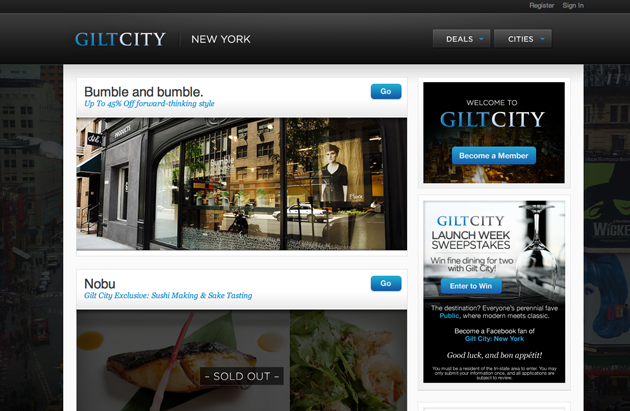 But like Groupon, it seems as though Gilt Groupe has its sights set on world domination with Gilt City.“We’re starting in local markets where the Gilt brand is already established and in the near-term we anticipate expanding to markets that match the Gilt experiential model,” says president Nate Richardson.