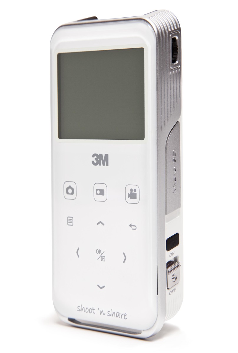 3M has also debuted a new camcorder in the pocket-cam style that has an integrated projector. They call it the Shoot ‘N Share, I call it a little premature. The 15 lumens won’t be enough to display your video to friends, unless you guys really love hanging out in total darkness. And although it records HD video (720p at 60i, the press release says, which makes no sense), it only displays at 640×480 resolution. It also looks a bit bigger than people might like in a pocket projector, though I doubt 3M could make it much smaller. Costs $299.