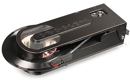 Vinyl is not dead, friends, and the respected record player is not without modern updates. We’ve seen USB turntables before, but turntables have, historically, been pretty large edifices of technology. That changes today with the Crosley Revolution. Stripped of the cabinetry that traditionally accompanies a turntable, the Revolution is portable, features a built-in handle, and can run on six AA batteries.. It also features an integrated FM transmitter, so you can enjoy that warm vinyl sound on anything with an FM receiver: your fancy audio system at home or that Sansa in your pocket. Coming soon for $150.