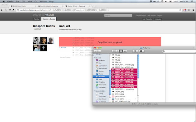 At first glance, this preview version of Diaspora looks sparse, but clean. Oddly enough, with its big pictures and stream, it doesn’t look unlike Apple’s new Ping music social network mixed with yes, Facebook. A few features they note: