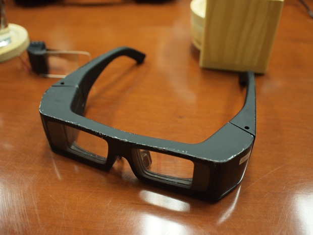 I’m rarely excited by technology anymore but Lumus pressed my willies button and didn’t let go. Although it’s a bit hard to explain, the technology is simple: an LCOS projector shoots an image through a glass lens and into specially polished areas of the glass. This area “projects” a simulation of a 60-inch color screen in HD in front of your face and the lenses are see-through so you can look away into the distance or up close at objects in front of you. Because the system is stereo-optical you can transmit two of the same image to both lenses or – and this is where it gets crazy – you can transmit two separate images. That’s right – 3D images in front of your face, anywhere you look and the images are unobtrusive.