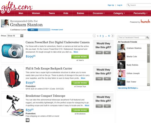 Recommendation engine Hunch is rolling out partnerships with seven large sites to provide personalized recommendations for their products, services, or content. Interactive Corp’s Gifts.com, Bluefly, Buzzfeed, Heyzap, ShopStyle, Milo and FanBridge are the initial partners, and Hunch says more will be announced shortly.