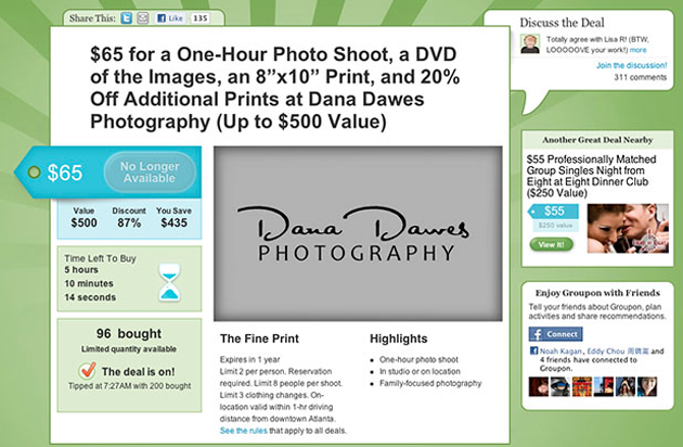 To its credit, Groupon is currently re-evaluating the photography deal structure after reading the comments on the discussion board, which it pulled from the site. For a particularly interesting read and a glimpse of the story as it unfolded, go here.