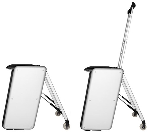 Acquire points us to this weird TravelTeq aluminum suitcase that folds out to turn into a seat (for long waits at the airport) and has a small protective case that pops out for your laptop or other sundries. There’s also an option charging and speaker system that can be built-into the case.
