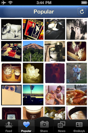 Another tab, called “Popular”, allows you to see the photos on Instagram that have received the most likes. This also serves as a good way to find new people to follow, Krieger noted. He said that going forward, discovery is going to be a key feature they’re working on.