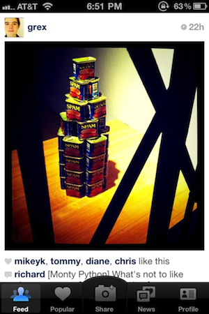 Once you take a picture and apply a filter (there’s also an option not to), the photo is shared into your Instagram Feed. From here, your friends on the site can “like” or comment on it. But another key to Instagram is that it’s just as easy to share these photos to other social networks — like Twitter, Facebook, and Flickr. To do that with CameraBag, for example, you have to use email — ugh.