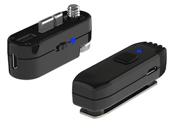 The freedomMIC features a high performance condenser microphone with DSP noise cancellation. Users can also wirelessly control record and stop functions remotely from the microphone/transmitter. The wireless system operates on Bluetooth Class 1 technology and provides up to 100 feet of wireless range. The complete system features the wireless transmitter and the microphone that that clips directly to the subject.