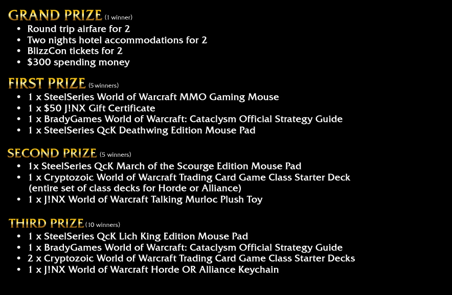 The big winners—two people will win the grand prize—will be given a free ride to Blizzcon. Hotel, airfare, the works.