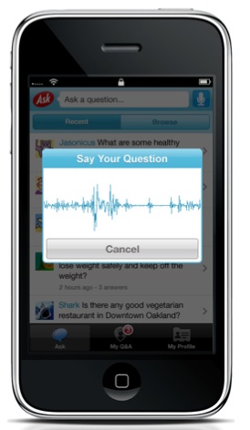 When the iPhone app launches in the next couple of weeks, anyone who downloads it will automatically be enrolled in Ask’s social Q&A beta. The app lets you ask questions either by typing them in or speaking them. It translates the voice to text and then tries to offer up the most likely answer right away, based on its index of more than 500 million question and answer pairs from sources across the Web, including other Q&A sites, FAQ pages, and more. Right below that best guess is an option to “Ask the Community.” Your question will then be routed to people in the beta who self-selected as being knowledgeable in related categories. (Before the end of the year, you will be able to ask your friends on social networks like Facebook and Twitter as well).