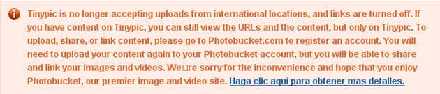 Update: While no one from Tinypic or parent company Photobucket has responded to our emails, another tipster reports that Tinypic is mysteriously back up for Spanish and possibly other users: