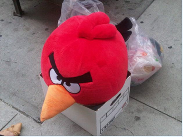 Today TechCrunch reader Joe Ziemer reports that he passed a woman in NYC with a box of ‘Angry Birds’ stuffed toys at her feet and snapped the pic above. The explanation? Turns out she works for the manufacturer. And, according to the Ziemer, she hinted that they’d be in stores come early 2011.