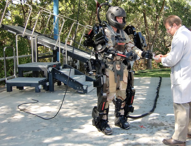 I asked Dr. Smith about the possibility of scaling the technology up to say, a Mechwarrior size model. Dr. Smith said the issue is that the suit is currently designed to work in a human-scale environment, but it is ultimately feasible for someone to create a giant walking robot. He also freely admits that the Sarcos lab is inspired by the fictional robotics that everyone grew up with, and there are Iron Man figures everywhere in the Sarcos offices.