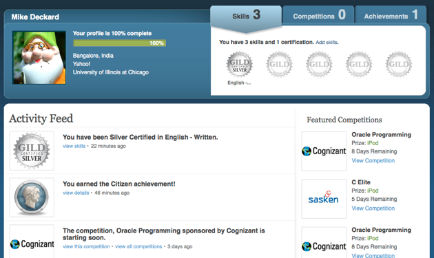 Gild invites companies to set up competitions, like ‘Brain Buster’ programming puzzles. Job-seeking professionals then complete these challenges on the site, receive their scores, and are ranked accordingly. You can engage in multiple competitions to help boost your chances. In addition to these company-created challenges, Gild will let you improve your profile by completing certification tests and other challenges. Fare well, and you can wear your top-level Java score as a badge of honor. And because it shows recruiters how you fared compared to the competition, the badges actually mean something.