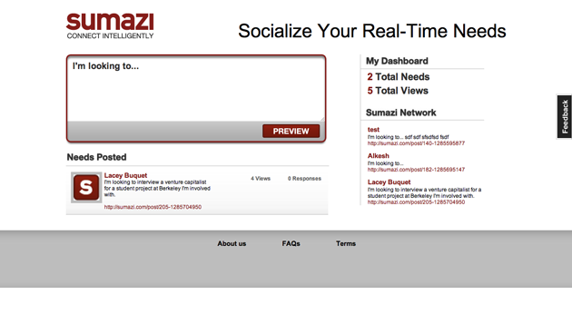 While we were demoing, founder Sumaya Kazi brought up the example of being able to meet a good UX designer through the Sumazi network by signing up for a “Need.” Kazi promises that with just a few clicks of a button Sumazi can help you meet anyone with the skill sets you’re looking for, helping you extend your number of average meaningful connections per year from four to a lot more.