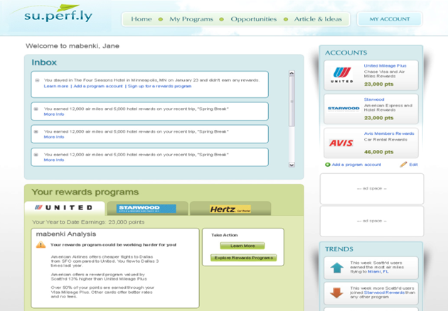 With the objective of consumer savings, Superfly aggregates travel information from all sides of the traveler spectrum and runs an analysis, plotting out user behavior patterns versus the available rewards programs in attempt to save users money.