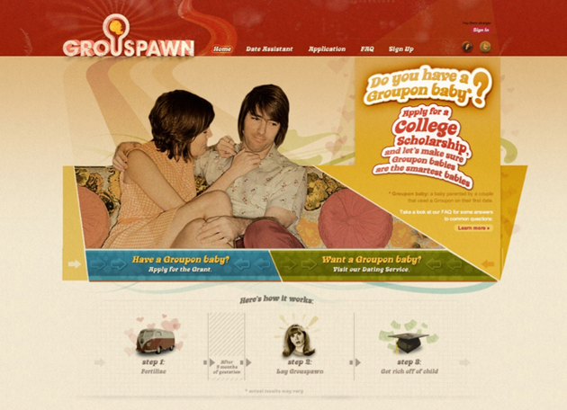 Daily deals site Groupon has chosen TCDisrupt to launch Grouspawn, their latest publicity stunt and exercise in strange company culture. Groupon CEO Andrew Mason has decided that as the company expands, there will inevitably be babies born off the um, intercourse people are having on dates where they use Groupons.