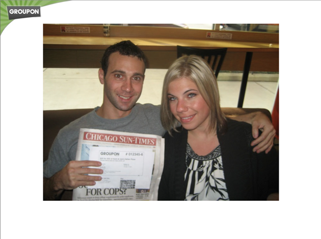 In order to prove that in fact customers did meet on a Groupon date, scholarship applicants must send in a picture of themselves on a Groupon date, including the Groupon used and a picture of the day’s newspaper.