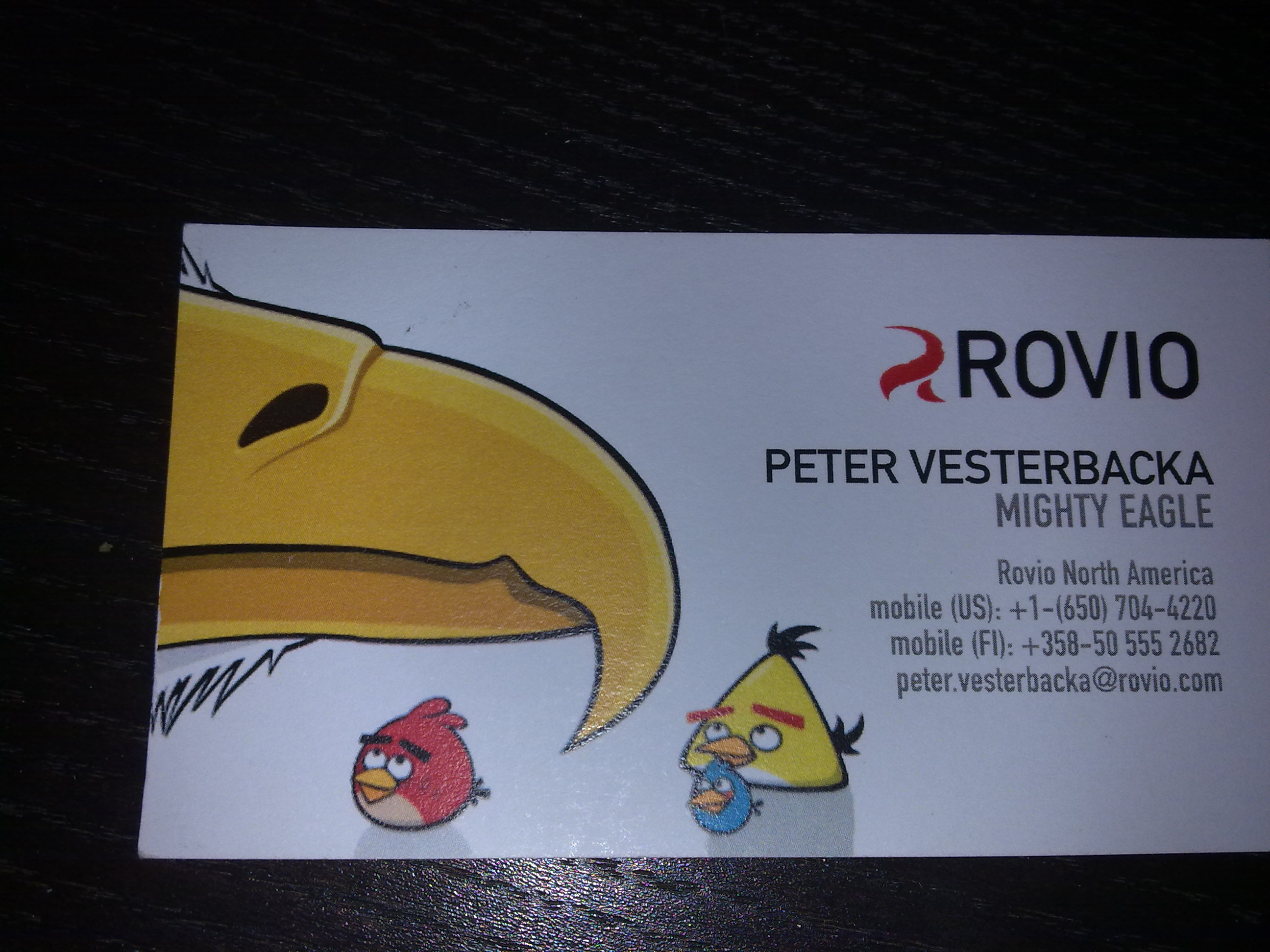 A few weeks ago he wrote a post for us about Somaliland using mobile and wire services to become a cashless society. Yesterday, he sent me a note from Helsinki. As far as I can tell he flew there just to get an Angry Birds toy for his kid. He did a little reporting for us on the phenomenon while he was there. Reminds me of the early days of Facebook when a young Mark Zuckerberg had “It’s CEO, Bitch” business cards and supreme confidence he could take over the world. He kinda turned out to be right. Will Rovio’s Mighty Eagle Peter Vesterbacka?