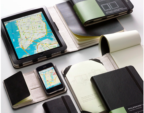 I only bring this up because I was just alerted to these Moleskin covers for the iPhone and iPad. They look spiffy enough, and certainly err on the “professional” side on the looks departure. They’re not Justin Bieber cases, that is.