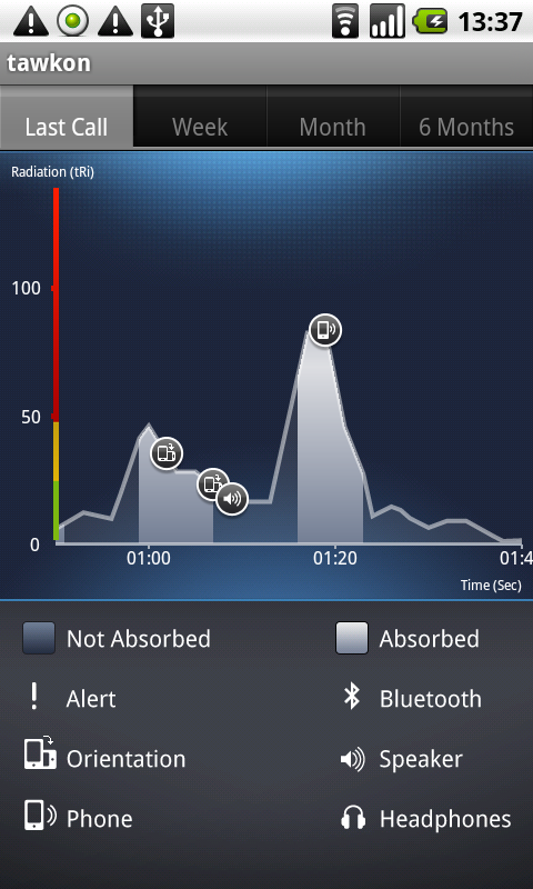 - Personal Stats – Find out how much radiation you avoided by using Tawkon during the last call, day, week, month and six months.