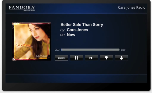 With Pandora for Google TV you can easily tune in to the personalized stations you’ve created on the web or on your phone, listen, and rate songs with a thumbs-up or a thumbs-down. You can even create new stations right on Google TV. It’s great for parties too — as you listen, the screen updates with big beautiful album art and information that illustrates what’s playing – a great conversation piece for you and your guests.
