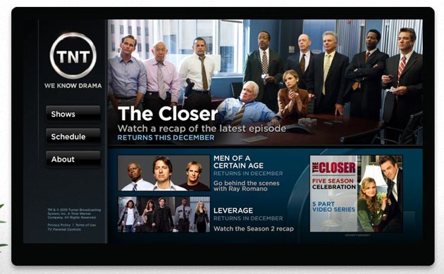 In addition to these native applications, Google is also showcasing web applications built by content owners, including VEVO, CNN, New York Times, and Cartoon Network (the TNT shot below is of a web app, the rest are for native apps). These are interesting for a few reasons. Google TV promises access to the full web though its integrated web browser, but, as we’ve discussed previously, the Internet is not optimized for the ten foot experience — Google needs these publishers to rework their sites the way they have for mobile, and it seems to be having luck.
