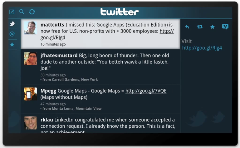 Partners are beginning to post further details about their applications. Here’s some detail on what you can do with the Twitter app: