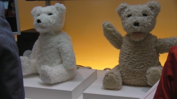 One thing that’s really missing at this year’s CEATEC 2010 exhibition is robots, at least from the bigger companies. One exception is Fujitsu whose so-called “Social Robots” may not look like much from the outside but are actually quite sophisticated. Even though the teddy bear robots sounded pretty creepy (they keep making weird noises, which you can hear in the video embedded below), I was brave enough for a hands-on test.