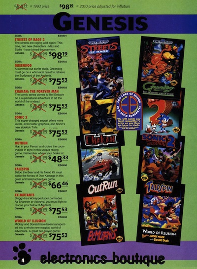And I know you can read charts, but Streets of Rage 2, $64.99 in 1993, would set you back nearly $100 in 2010.