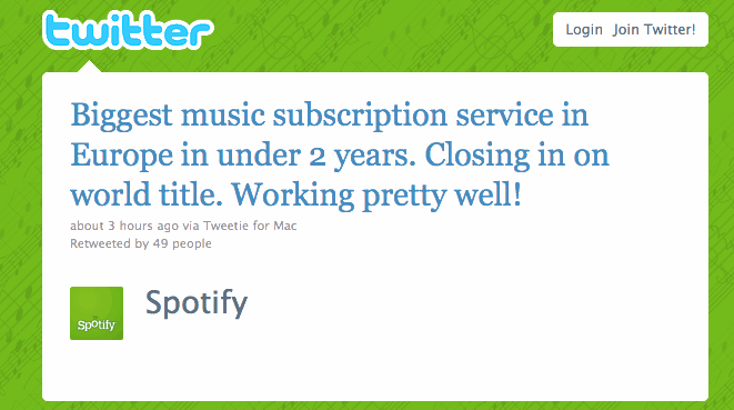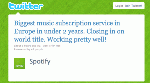 But here’s the thing: When you’re going to be this arrogant for this long, you have to, at some point, show something to back it up. Just read the comments on every Spotify post we’ve done over time to see how weary even the fans are getting of the endless promises of a US launch and the blase downplaying that the labels may have an issue with, oh, say, giving away music for free. And, yet, we get this Tweet today announcing the company’s impending world domination.