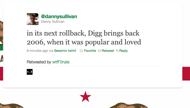 “Recently, we’ve been reinstating a number of the features that many of you loved about Digg. In the past two weeks we’ve brought back the “Upcoming” section, started restoring user profiles from the previous version of Digg, and made small but important tweaks to the site including better pagination. In the next few weeks we’ll bring back the bury button, restore all user profiles (including comment and submission history), add filters and navigation for videos and images, provide a tool for users to report comment violations, and update the Top News algorithm and overall site design based upon your feedback. The result will hopefully be a much better web site experience.”